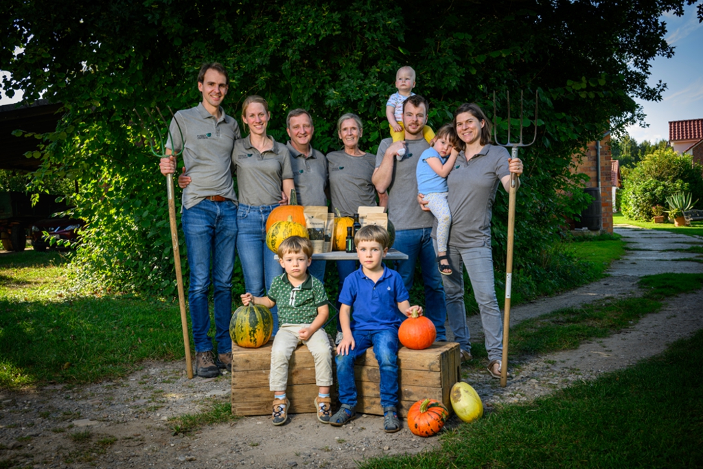 Seit 2018 gehören wir zu den Pionieren für den Anbau von Ölkürbissen in Deutschland. Auf den Anbauflächen unserer landwirtschaftlichen Betriebe in Niedersachsen gedeihen die Pflanzen, die sonst eher in Ländern wie Österreich, Rumänien, Ungarn oder der Ukraine zu finden sind.